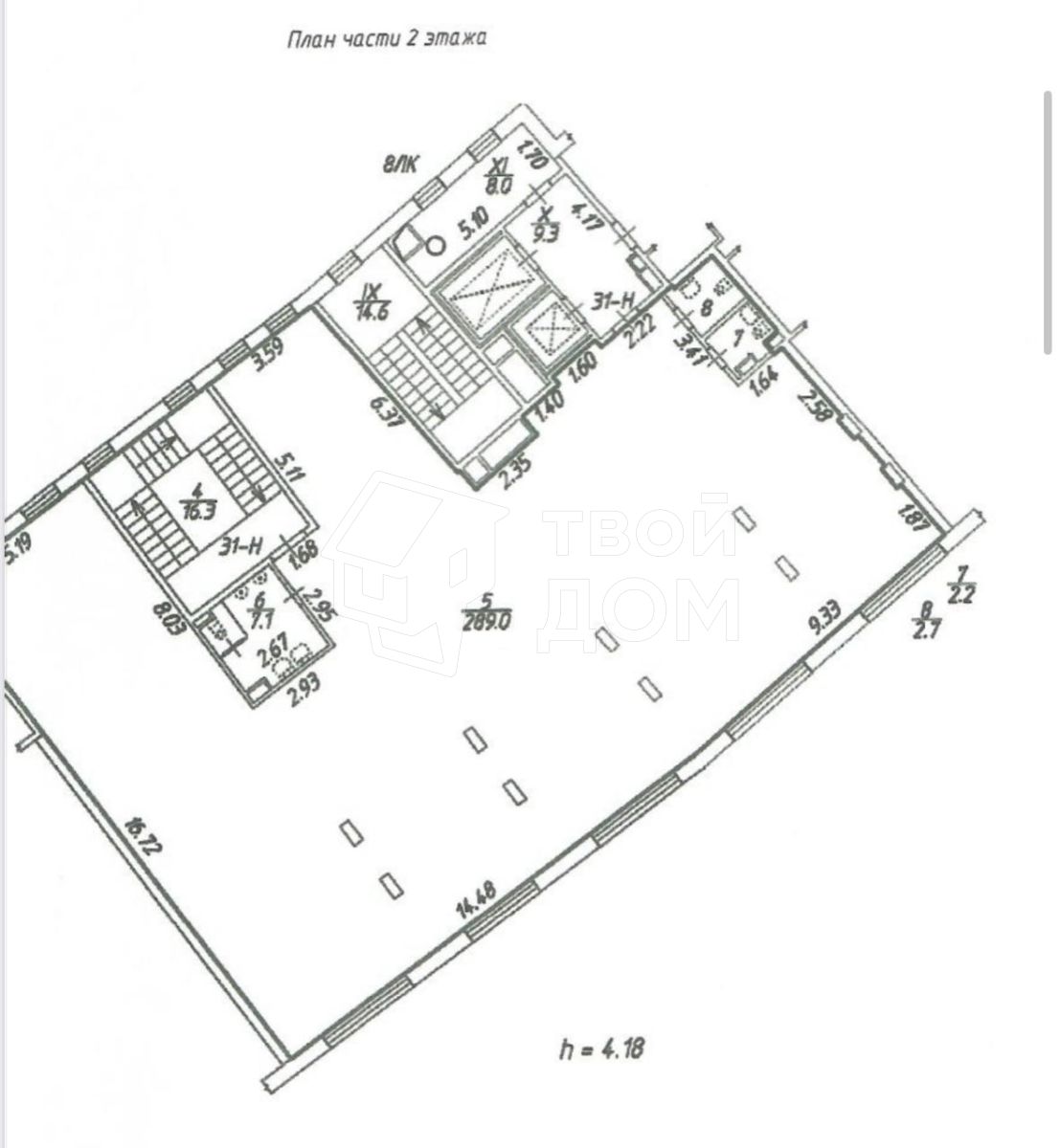 высота потолков 4.18м.