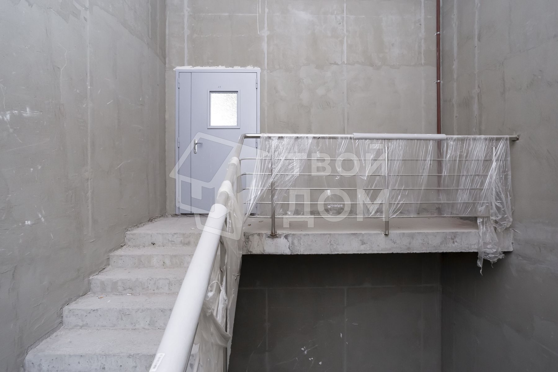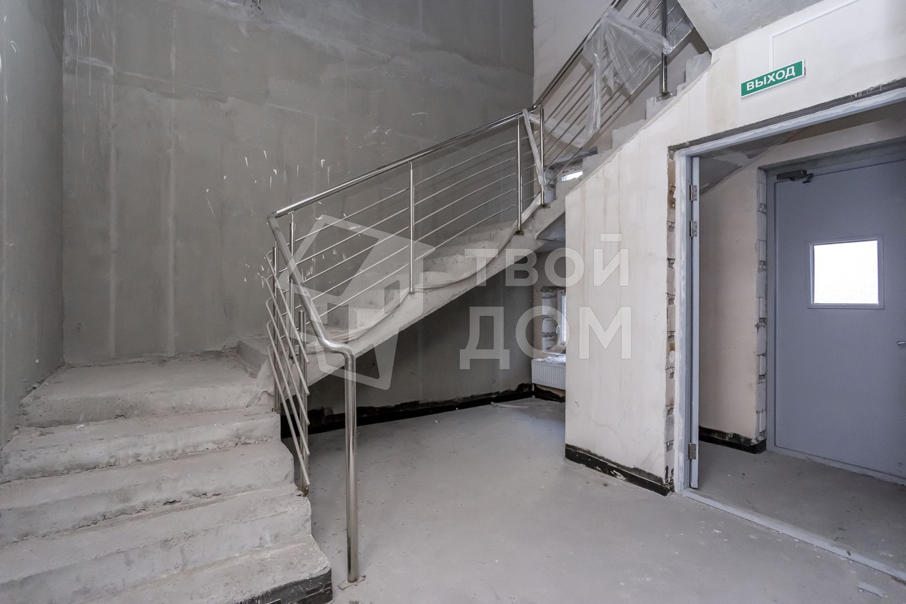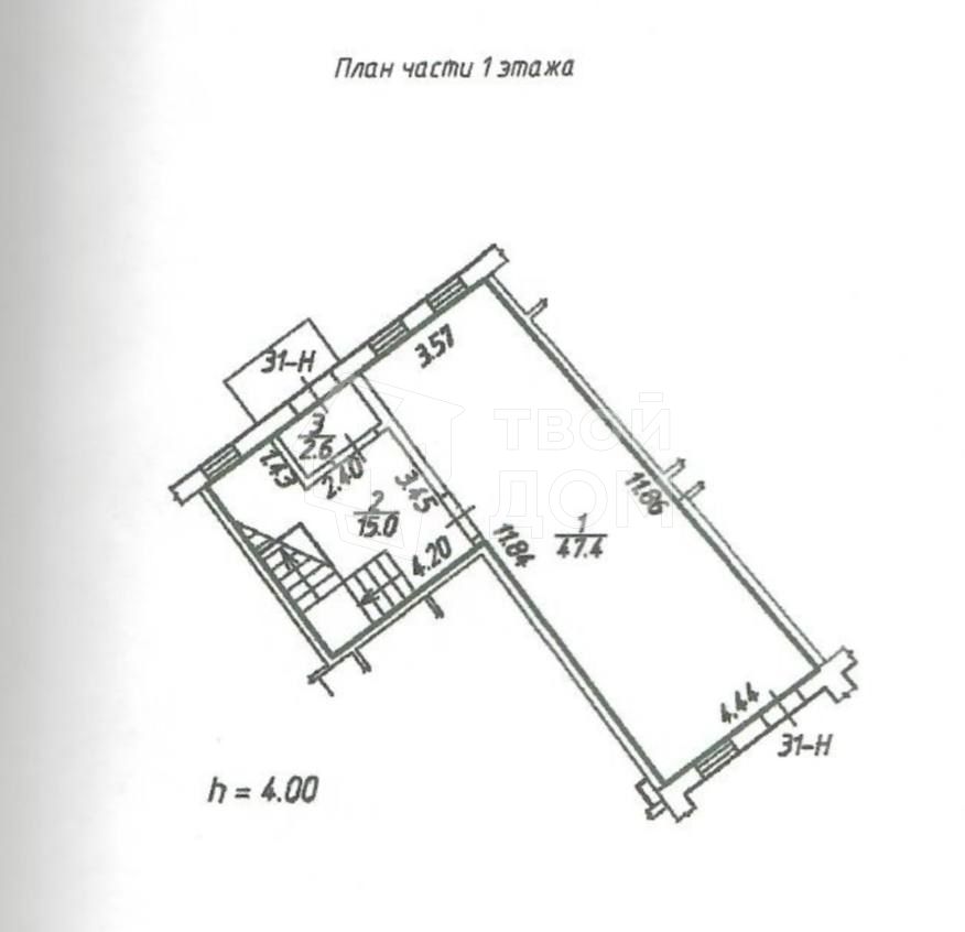 Два входа, если заходить со двора, то попадаем на лестничный тамбур, из него можно войти в зал на 1м этаже(47.4квм), либо подняться по лестнице на второй этаж.