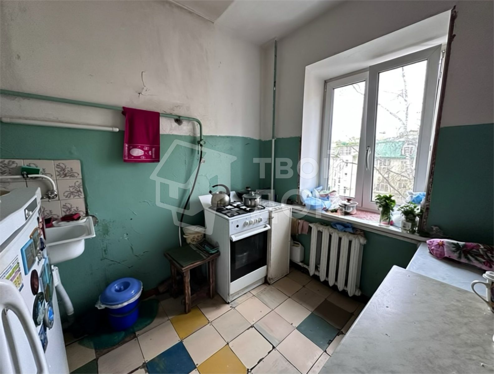 Комната расположена в трехкомнатной квартире, соседка по квартире всего одна)