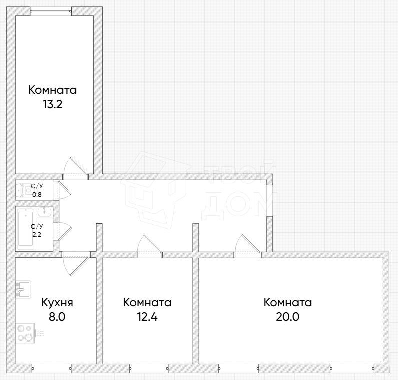 - Спальни 12.4 и 13.2 кв.м.