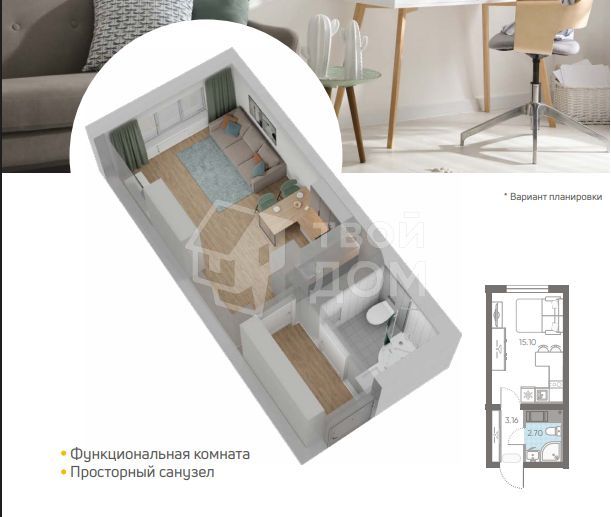 Продаётся студия с чистовой отделкой в ЖК комфорт класса!