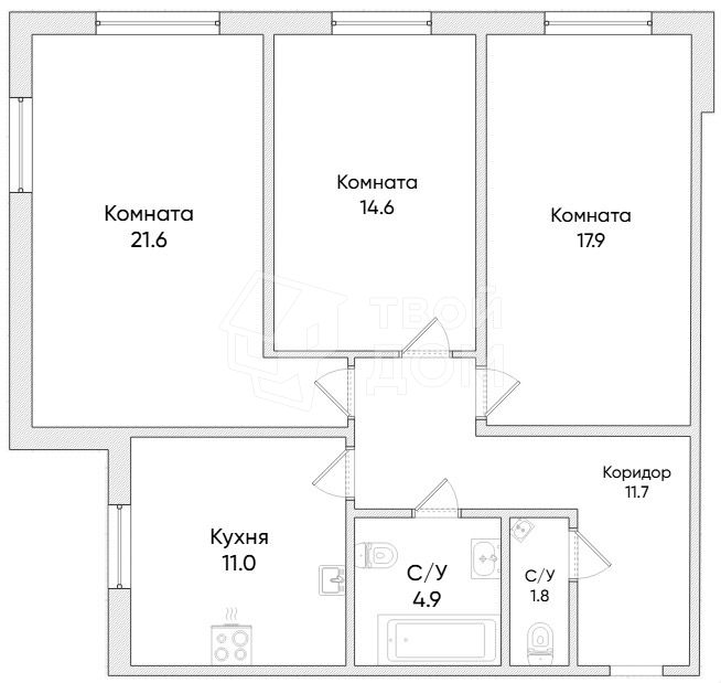3-комнатная квартира