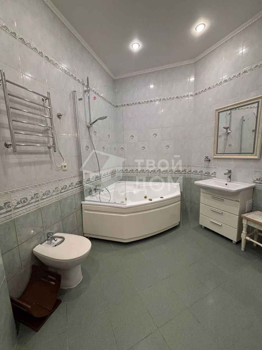 - Большой санузел с угловой ванной, стиральная машина