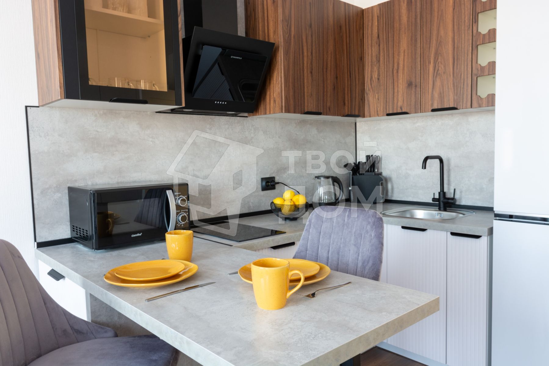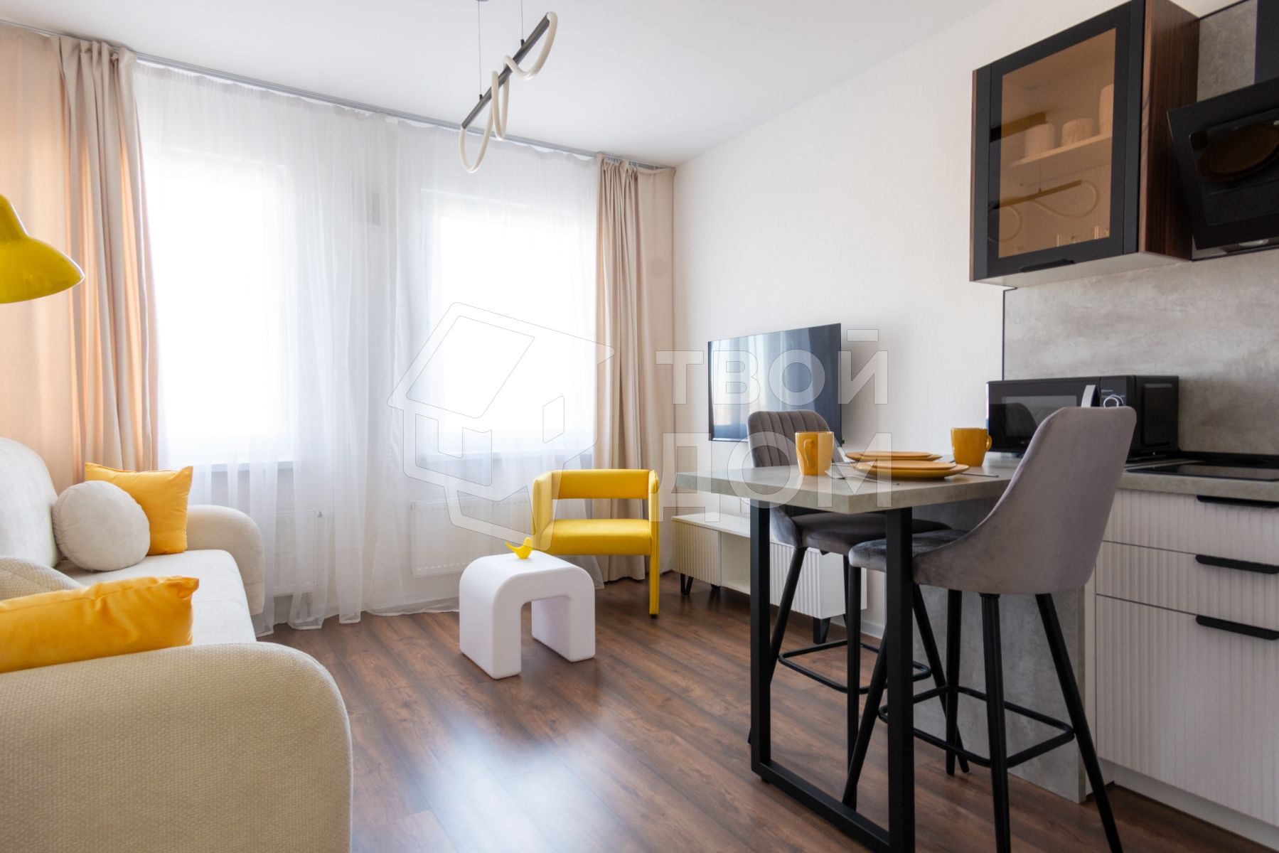 • Яpкий и совpеменный интeрьeр c акцентами, кoторыe сoздaют атмocферу уюта.