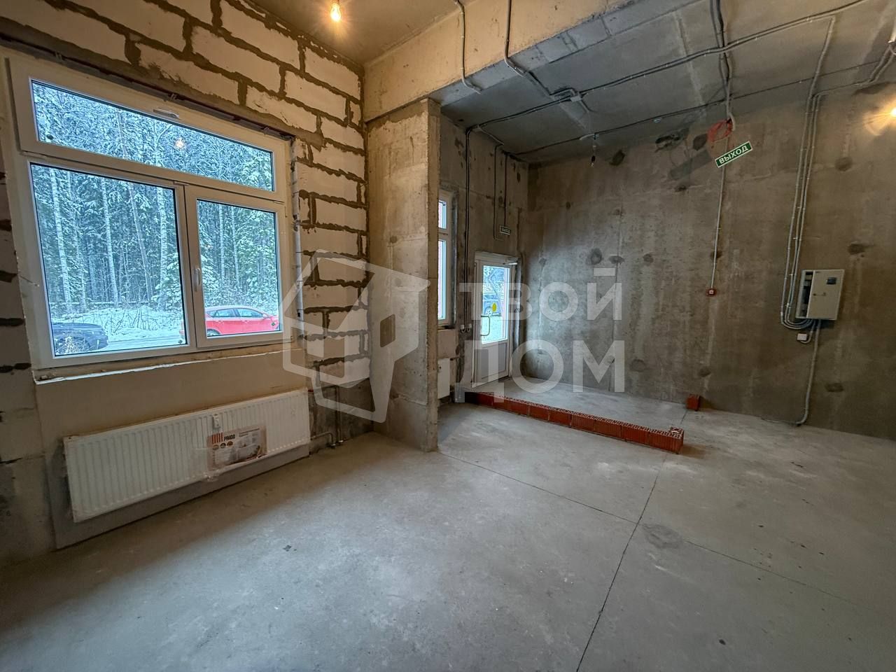 Помещение без отделки. На полу бетонная стяжка. Помещение сухое, теплое, светлое. Два окна, которые возможно использовать под рекламу.