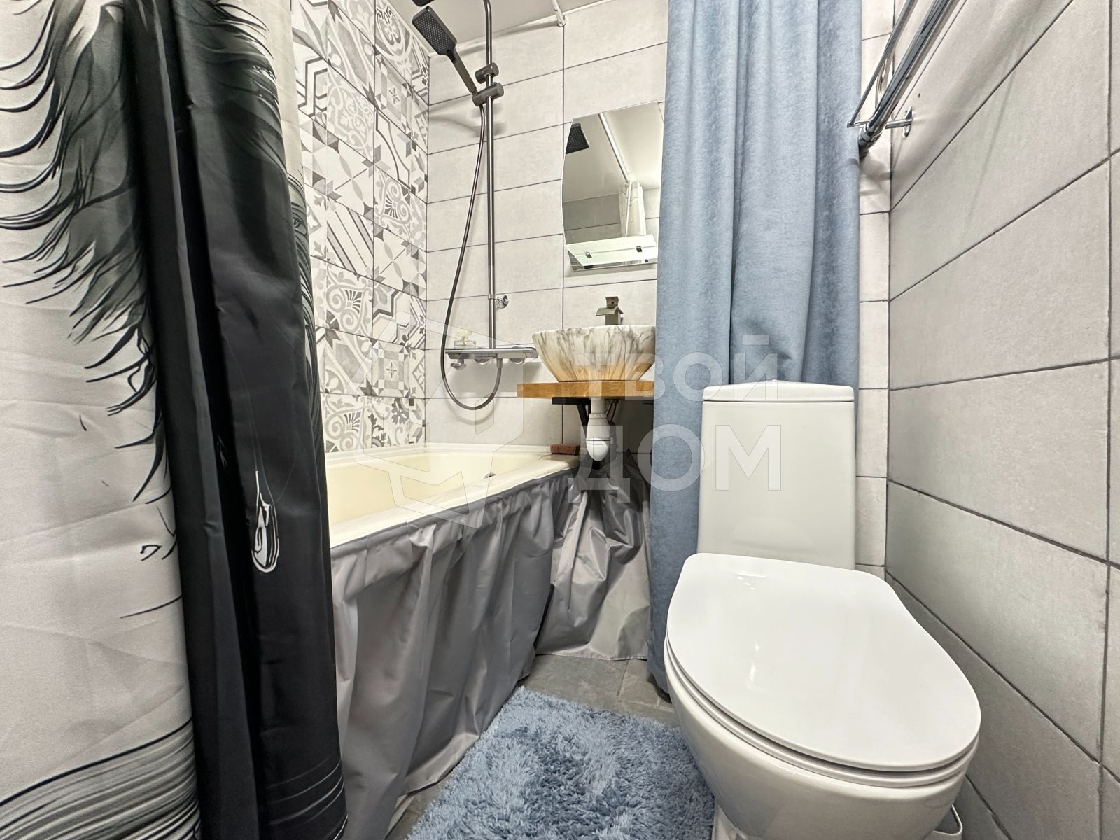 - В сан узле ванна, унитаз и дизайнерская раковина