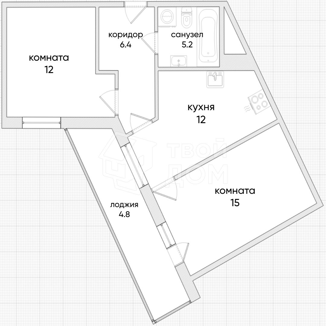 Светлая 2-комнатная квартира с лоджией 10 м²