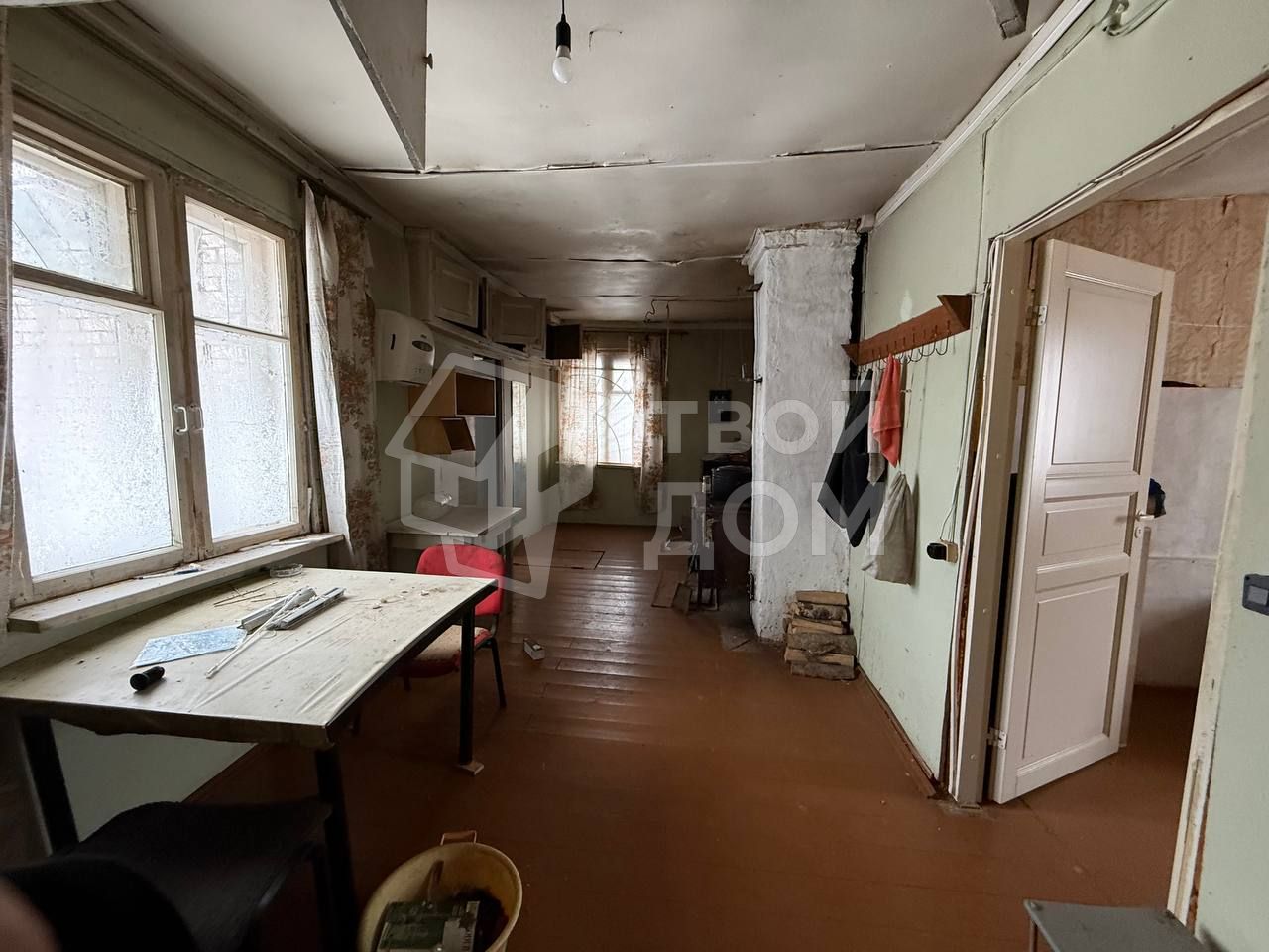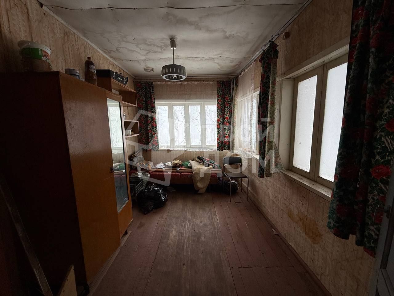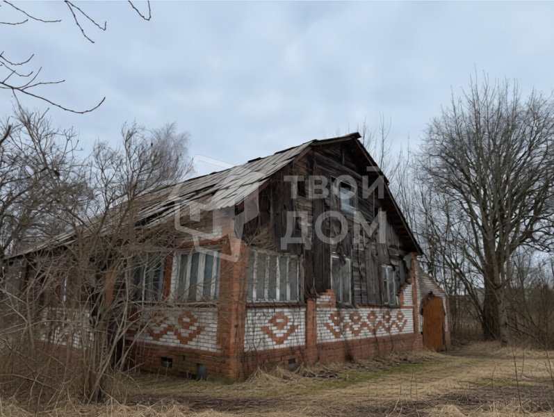 Дом из бруса, облицован кирпичом, требует ремонта.
