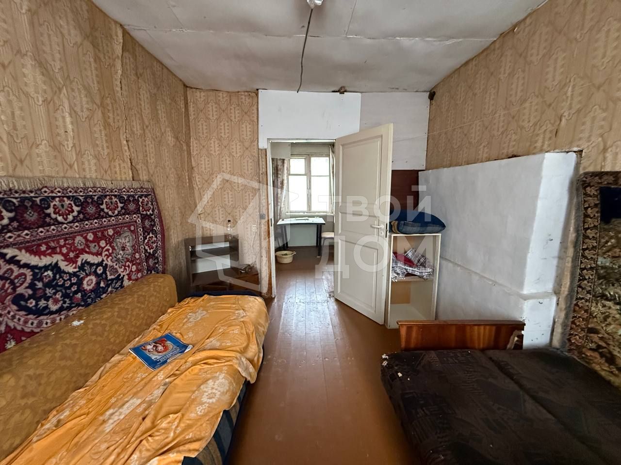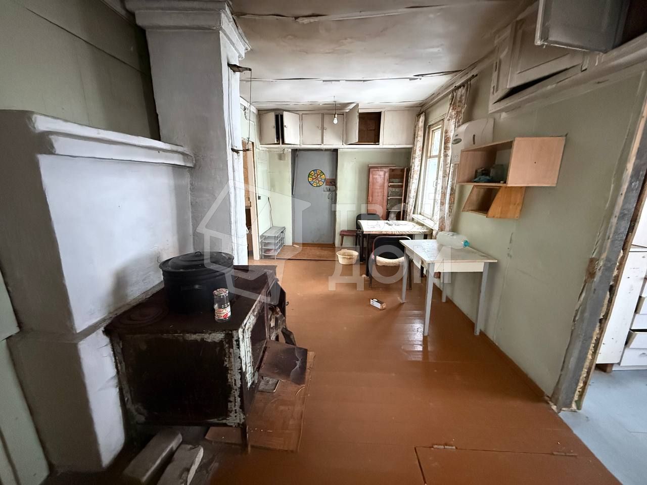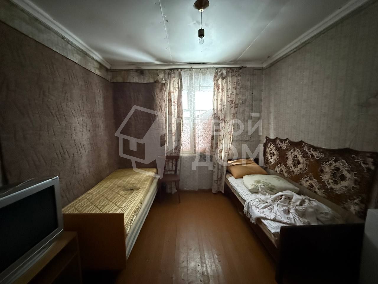 Дом из бруса, облицован кирпичом, требует ремонта.