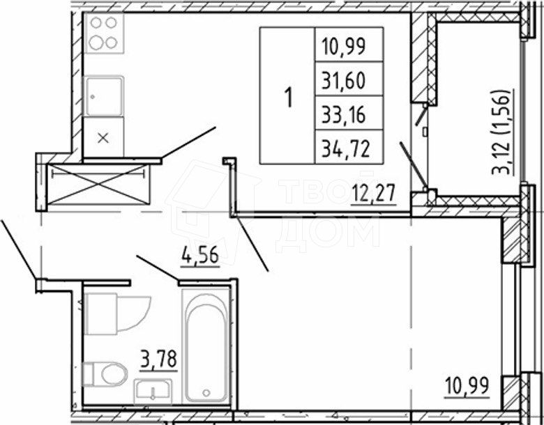 1-комнатная квартира